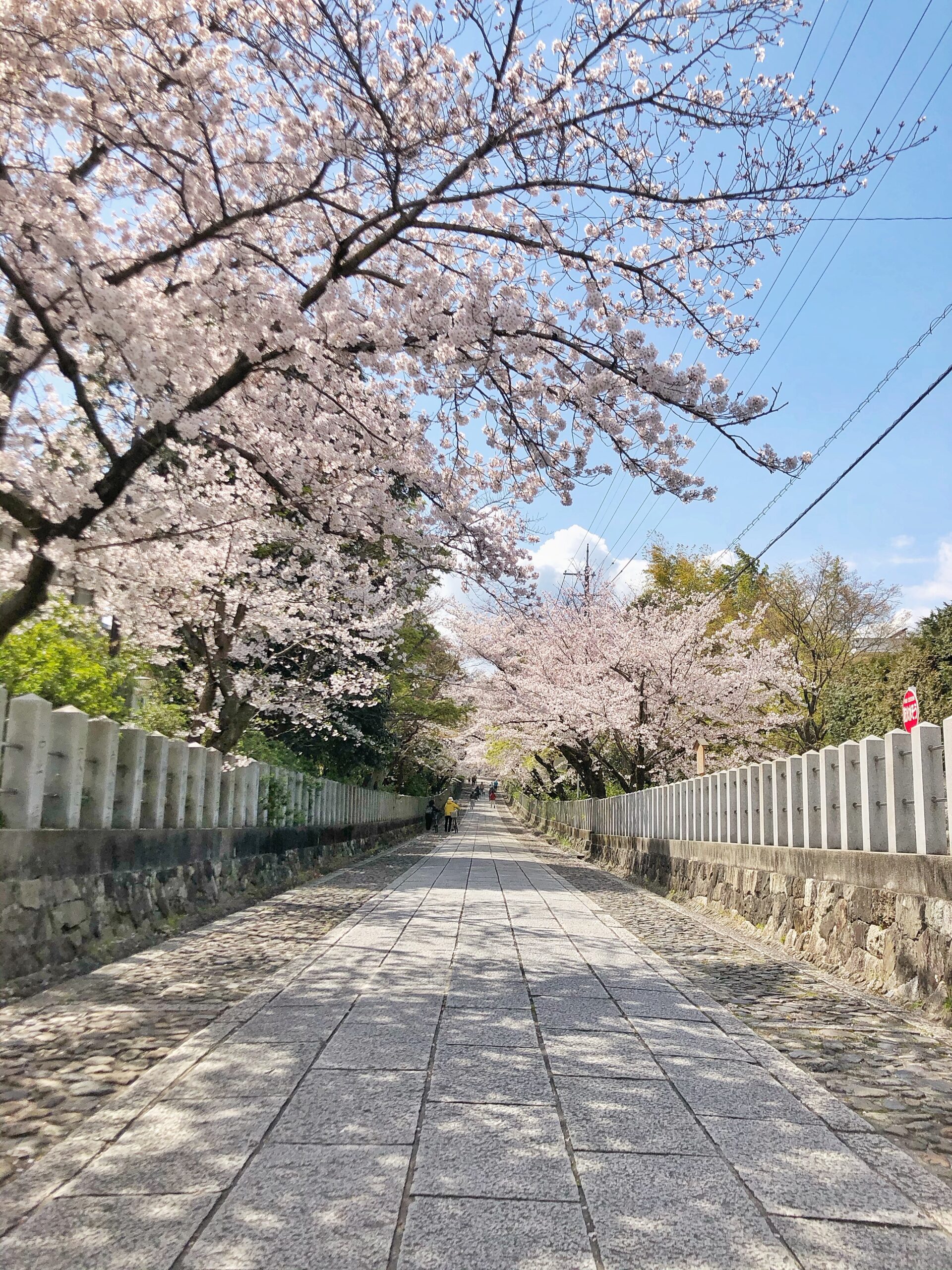 石畳の長い参道沿いの桜のトンネルは圧巻。神社の裏につづく桜の園では約20種類の桜も観賞できる。それでも無料。何かの間違いか!?